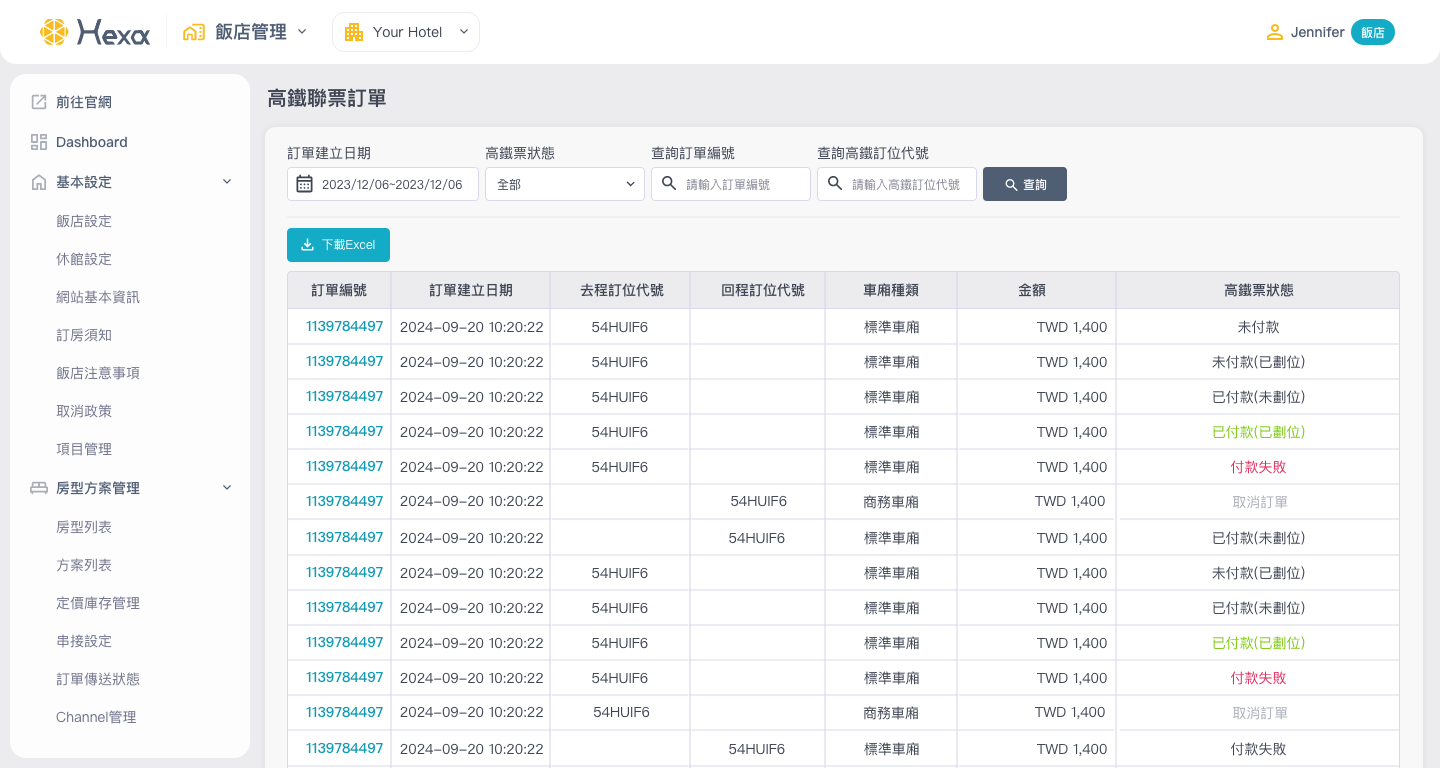 為提升顧客的整體旅遊體驗,Hexa 智慧官網提供高鐵票等交通票券的加購選項,讓顧客輕鬆規劃住宿及交通行程,省去繁瑣的購票流程。訂房完成後,即可選擇便捷的交通選項,一站式滿足旅行需求。