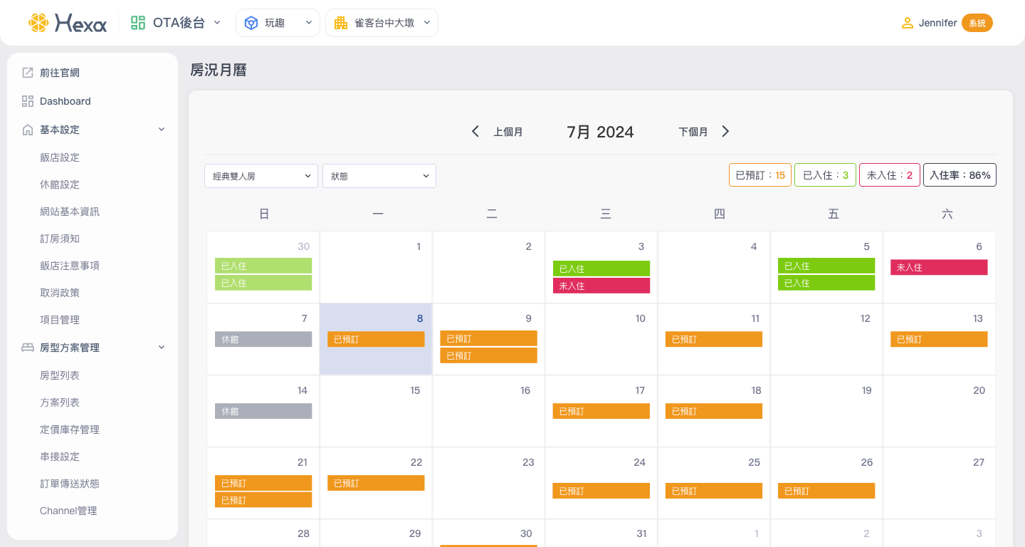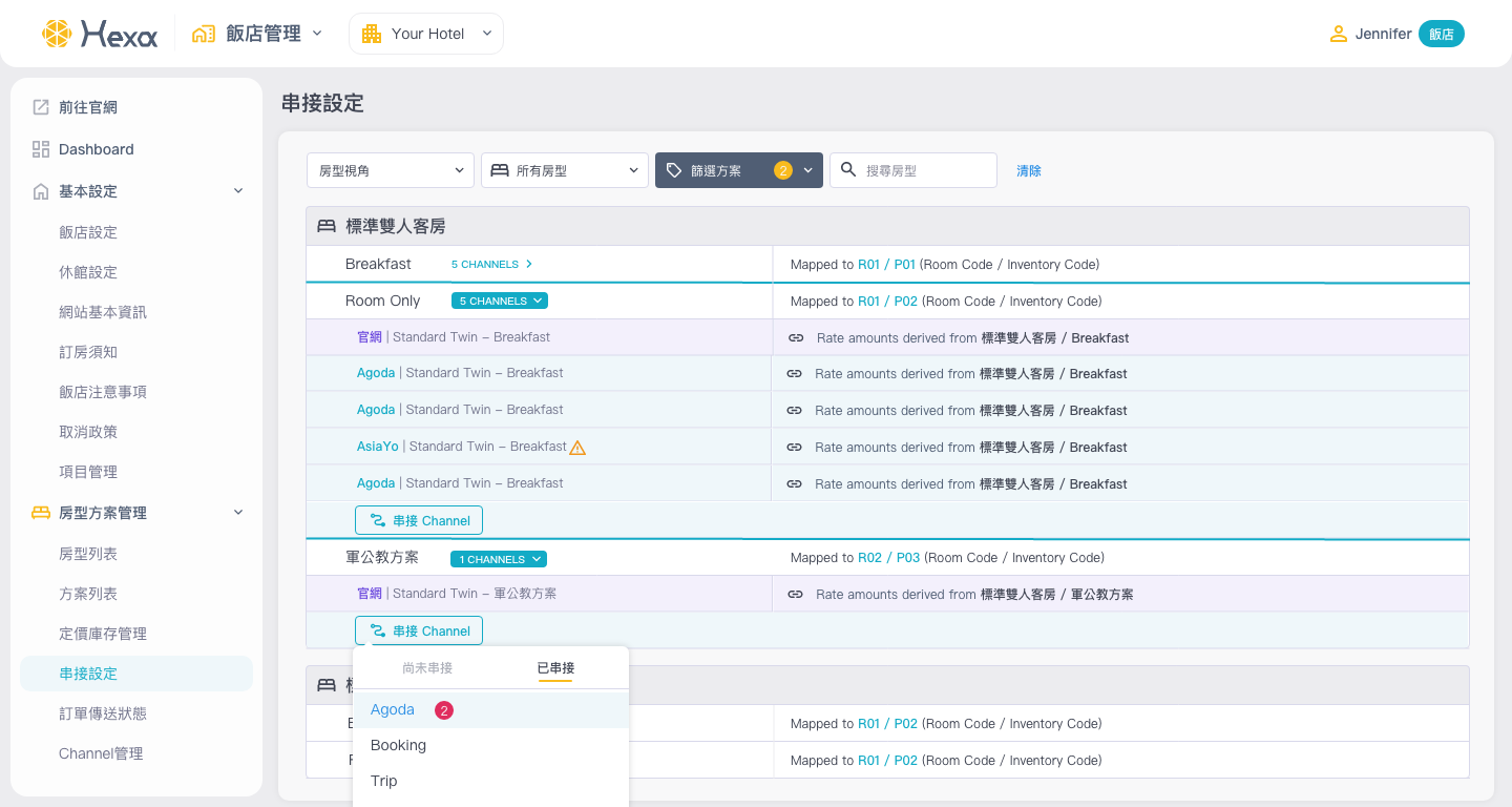 Hexa 的 Channel Manager 系統是您旅宿銷售的最強後盾!無論是 OTA 平台、自家官網,還是合作夥伴的渠道,Hexa 能實時同步房量、房價及訂單資訊,避免超賣與價格錯誤,確保您的房源管理始終如一。智能化的操作介面,讓您隨時掌控多通路銷售狀況,省時省力,輕鬆實現高效管理。
