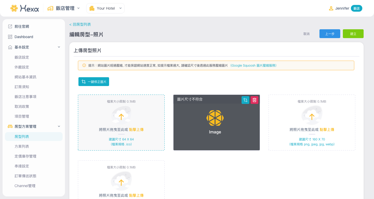 透過高解析度的房型圖片和詳細的設施描述,Hexa 智慧官網讓每位訪客都能深入了解房型特點,協助顧客做出更好的住宿選擇。從不同的視角展示每一間房間,加上圖文並茂的設計,讓顧客提前體驗下榻的舒適氛圍。